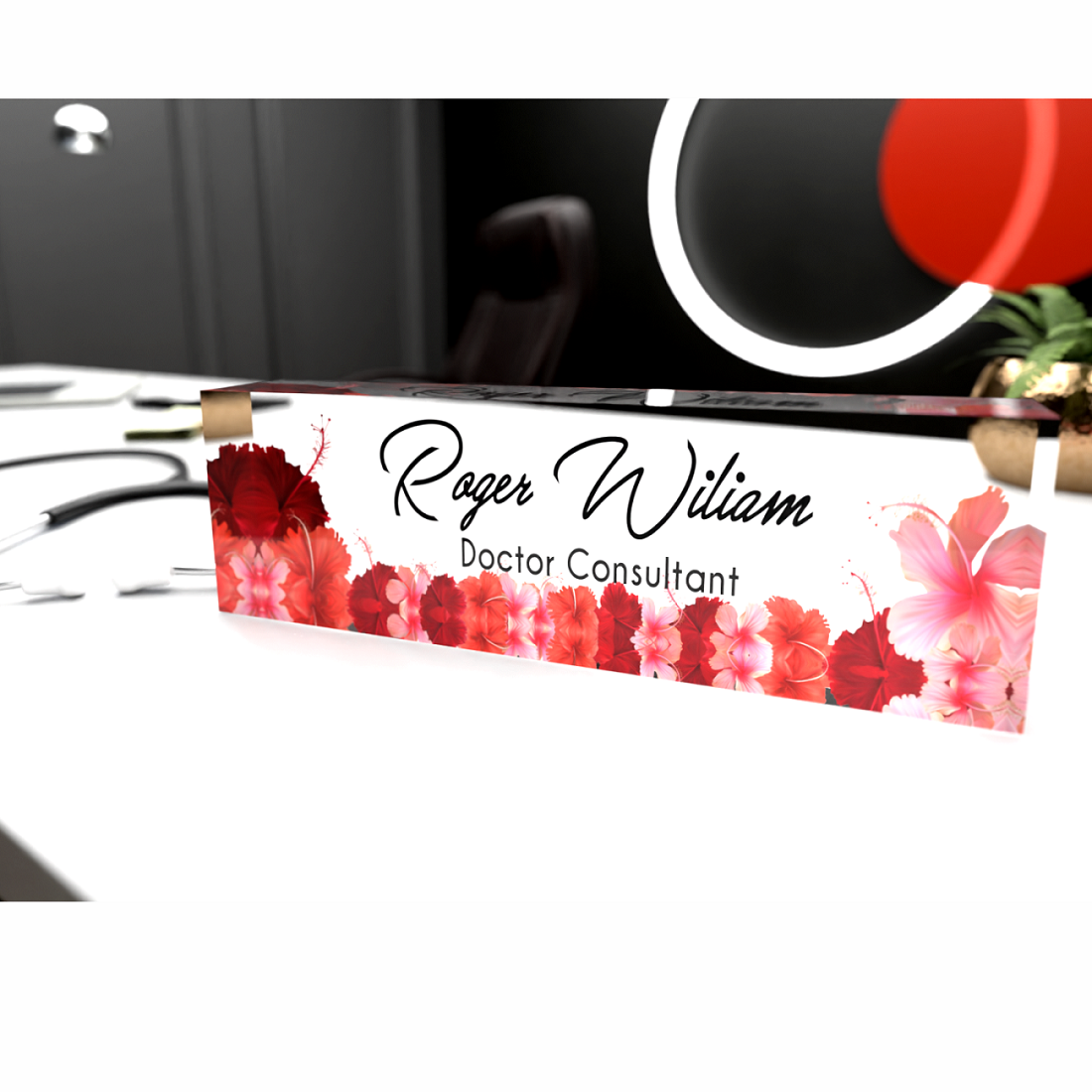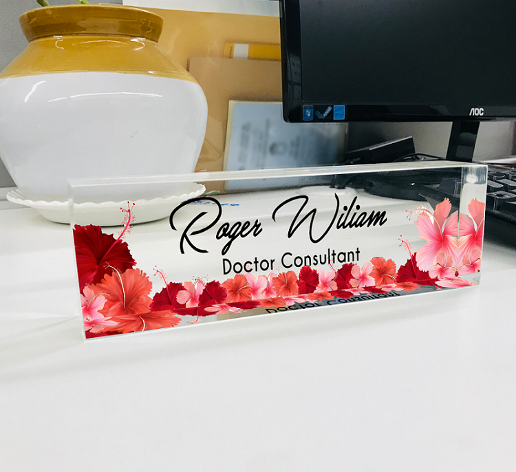 Premium Modern Acrylic Desk Name Plate Flower Design