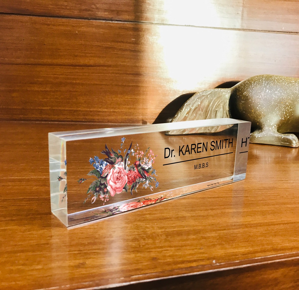 Acrylic Desk Name Plate Flowers