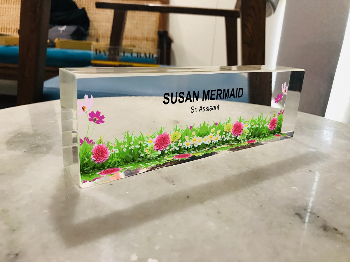 - HIGH QUALITY – OOCLAS Personalized Desk Name Plates Are Made Of High-quality Crystal-clear Acrylic Block. This Office Name Plate Will Stand Out On Any Desk!