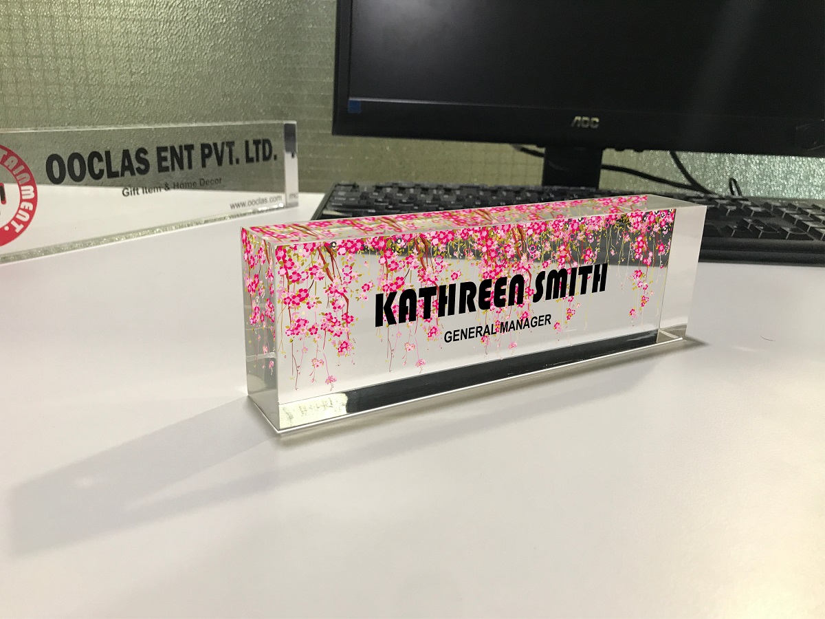 - HIGH QUALITY – OOCLAS Personalized Desk Name Plates Are Made Of High-quality Crystal-clear Acrylic Block. This Office Name Plate Will Stand Out On Any Desk!