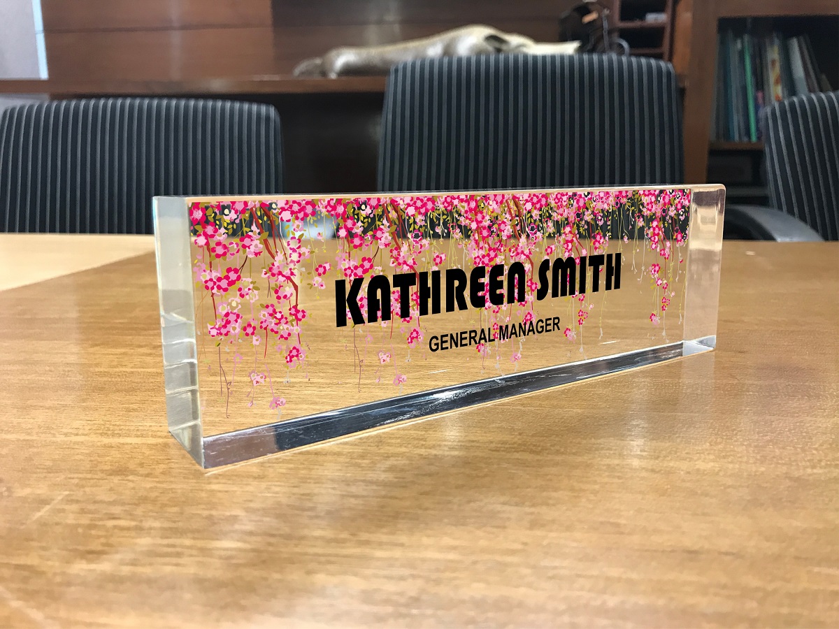 Premium Modern Acrylic Desk Name Plate Flower Design