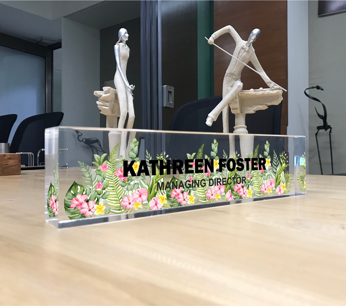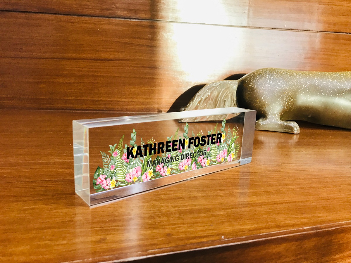 Acrylic Desk Name Plate Multi Flowers