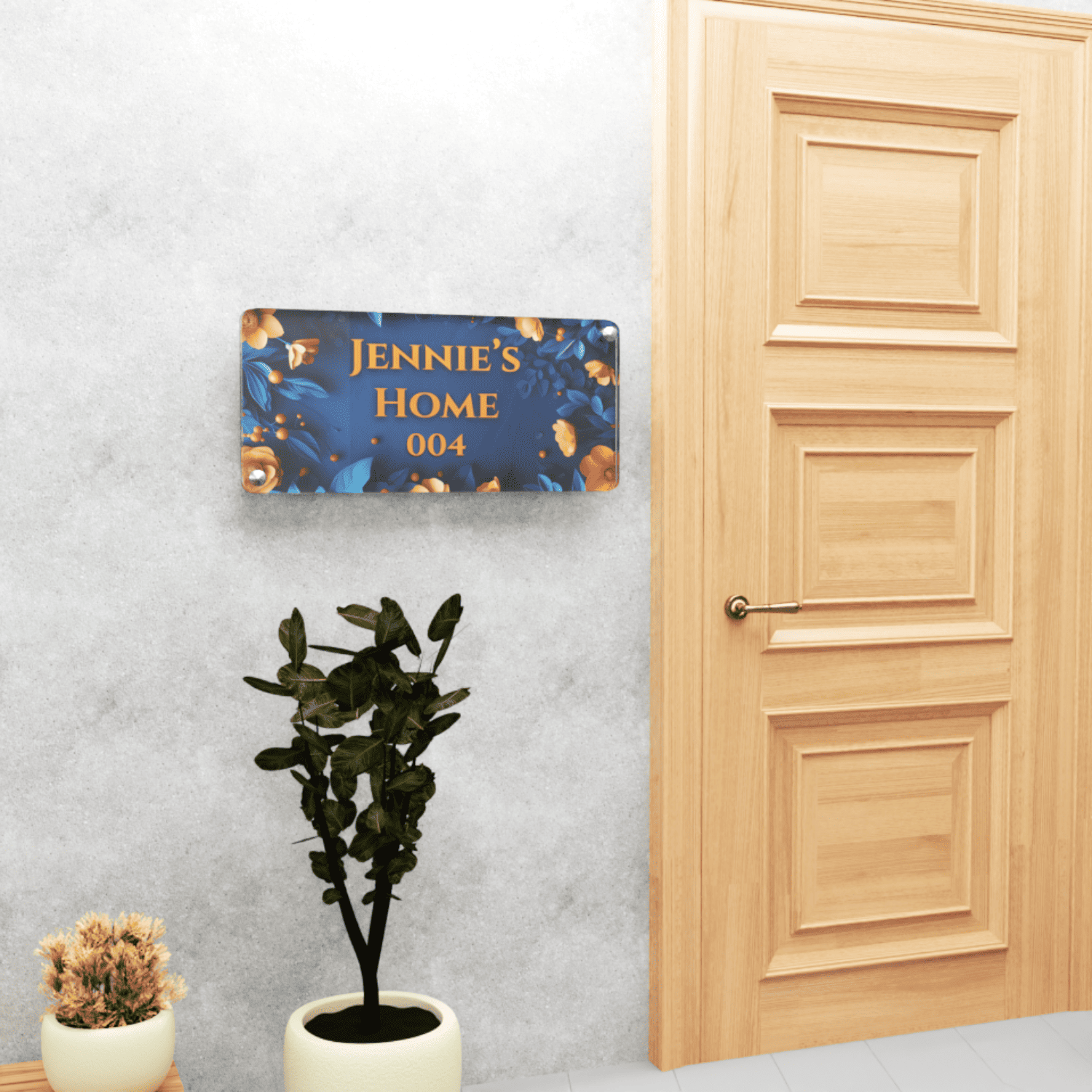 Custom Acrylic 8 mm Thick Door Name Plate Blue Orange Flower Design
