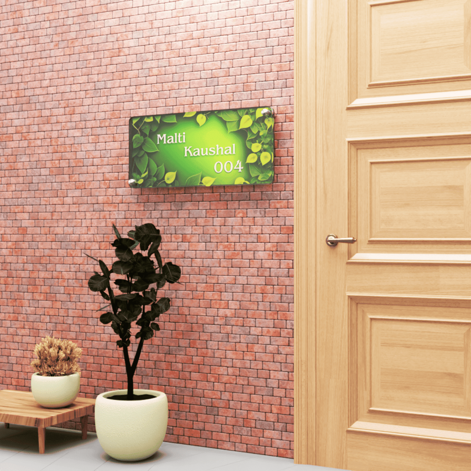 Custom Acrylic 8 mm Thick Door Name Plate Green Leaf Design