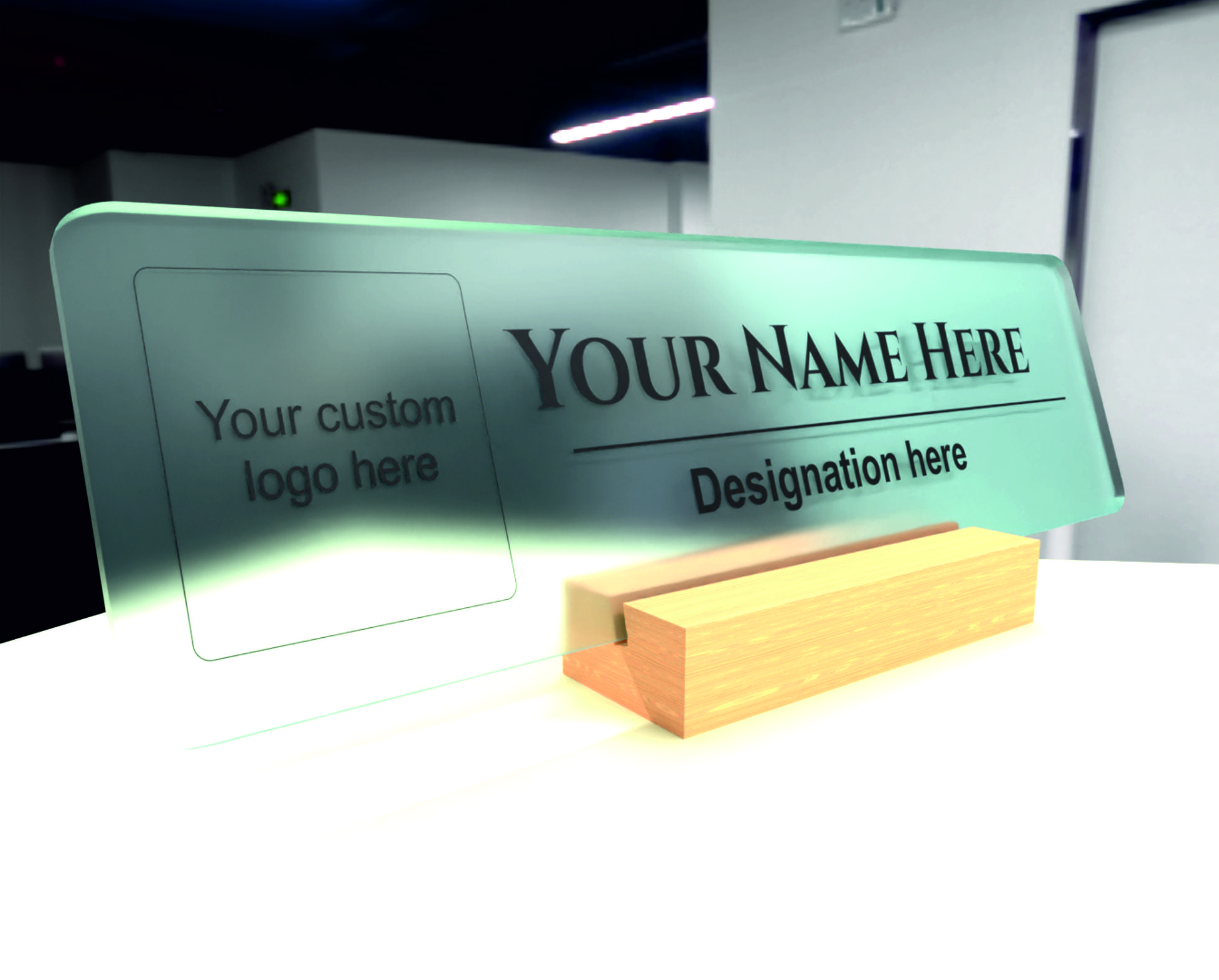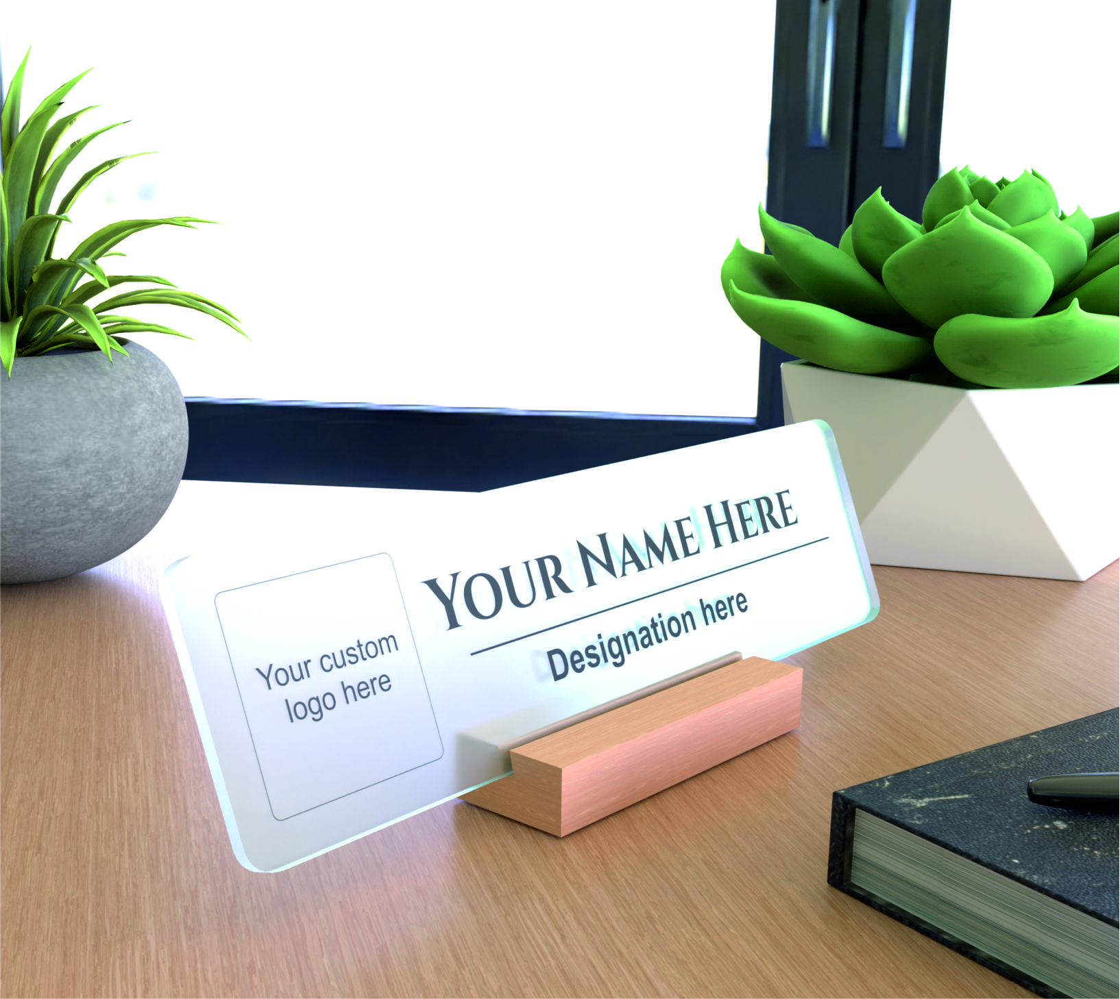 Custom Acrylic Desk Name Plate with Wooden Stand | Matte Finish