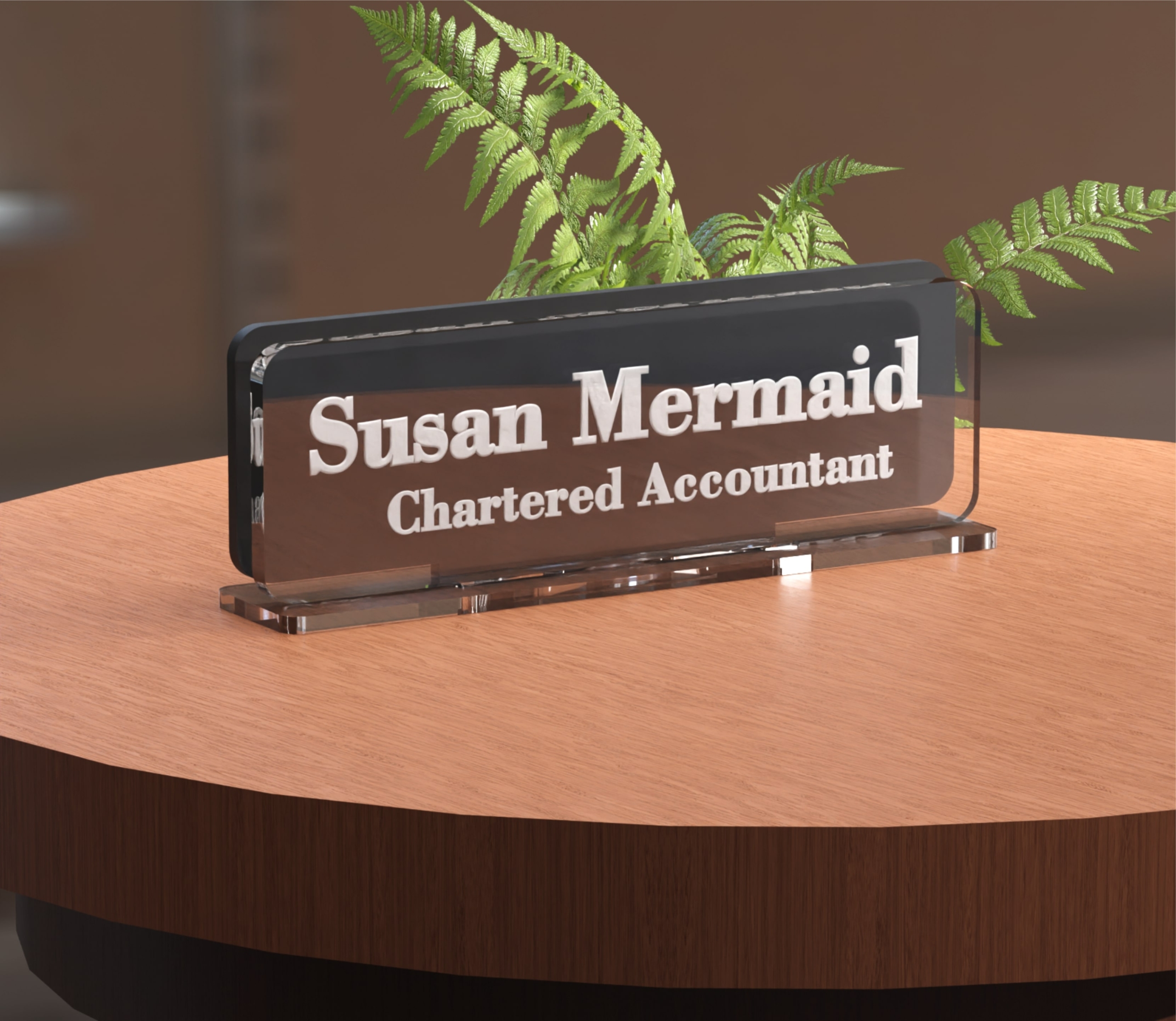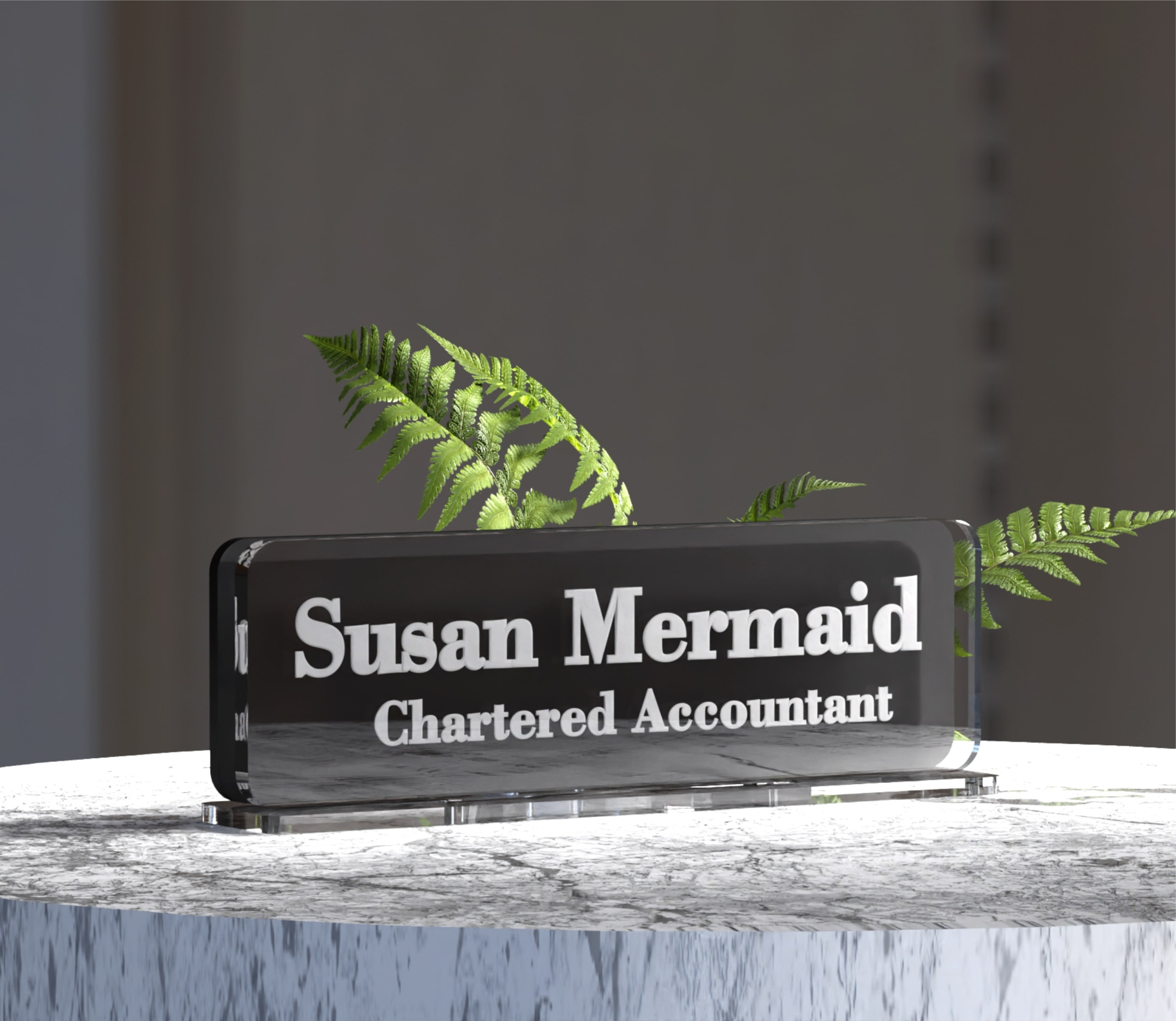 - Premium Engraved Acrylic: Crafted from high-quality acrylic, our name plate offers a smooth, glare-free finish that exudes elegance and durability