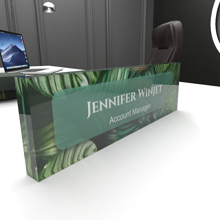 Customize Acrylic Desk Name Plate Green Leaf Print