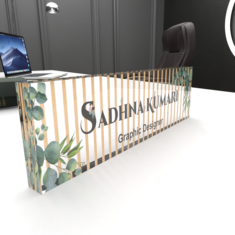 Premium Modern Acrylic Desk Name Plate Flower Design