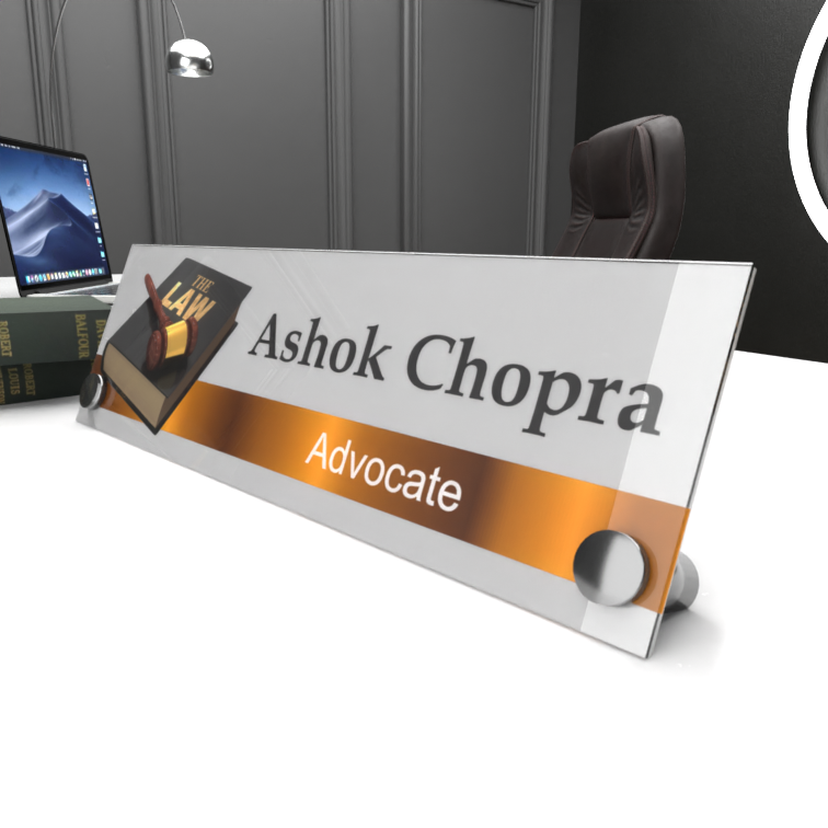 Customize Acrylic Desk Name Plate with Stud for Advocate