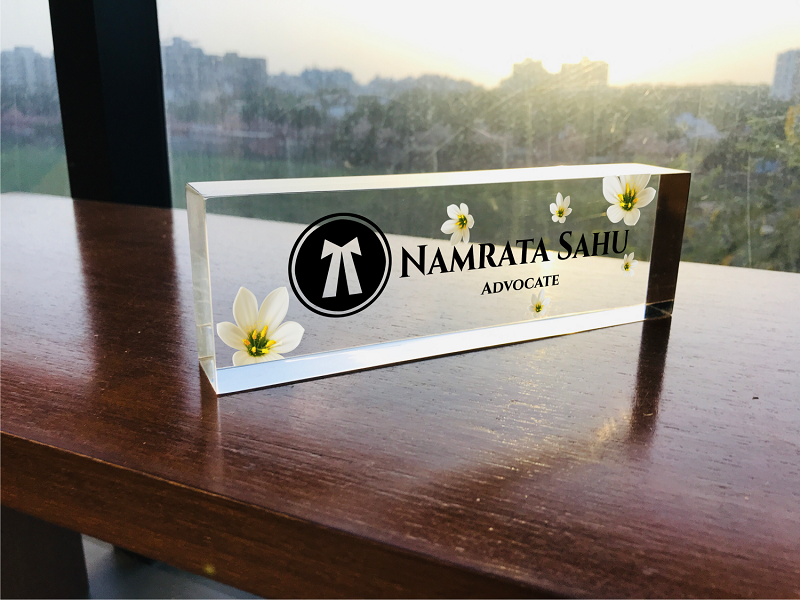 Executive Acrylic Desk Name Plates for Advocate White Flower Design