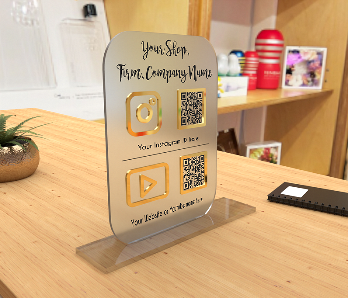 Tags: Acrylic Table Top, Google Pay QR Code, Instagram QR Code, Name Plates, Plaque for Shop, QR Code, QR Scanner, Social Sign