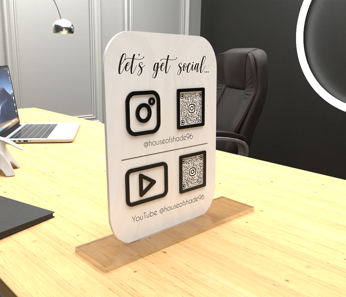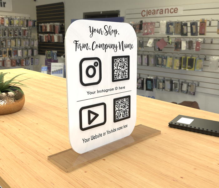 Tags: Acrylic Table Top, Google Pay QR Code, Instagram QR Code, Name Plates, Plaque for Shop, QR Code, QR Scanner, Social Sign