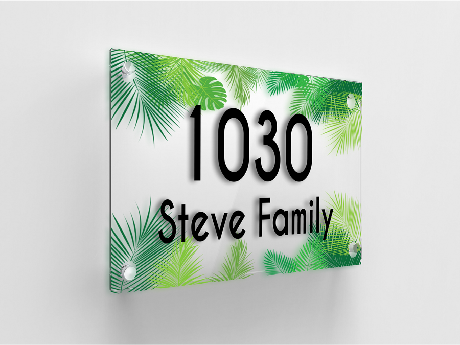 Modern & Sleek Acrylic Door Name Plates Green Leaf