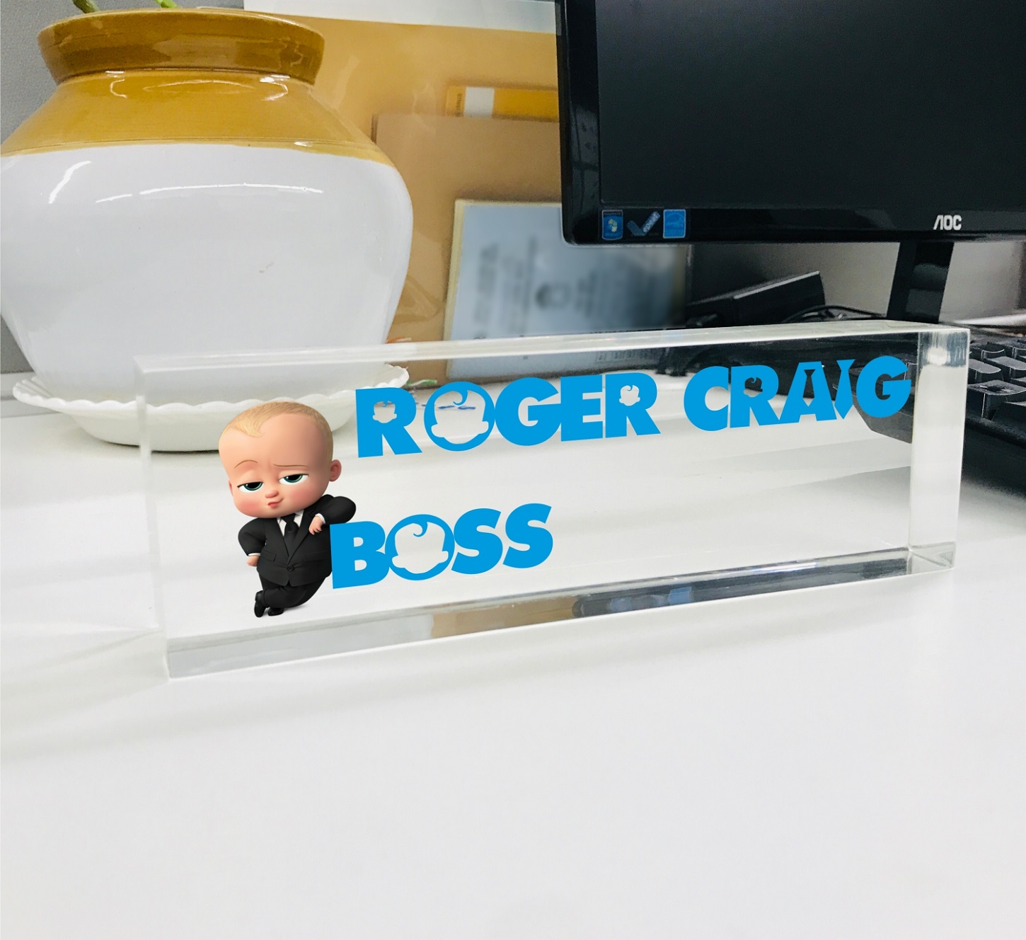 - HIGH QUALITY – OOCLAS Personalized Desk Name Plates Are Made Of High-quality Crystal-clear Acrylic Block. This Office Name Plate Will Stand Out On Any Desk!