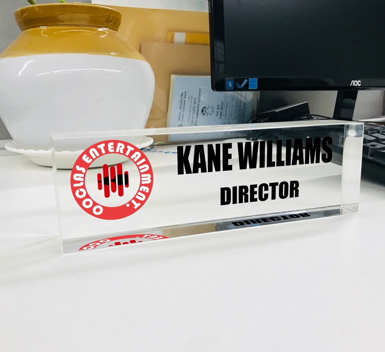 - HIGH QUALITY – OOCLAS Personalized Desk Name Plates Are Made Of High-quality Crystal-clear Acrylic Block. This Office Name Plate Will Stand Out On Any Desk!