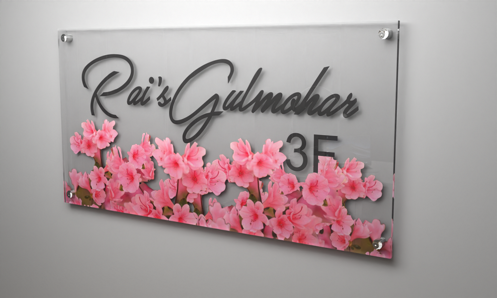 Premium Laser Cut Acrylic Door Name Plate Flower Design