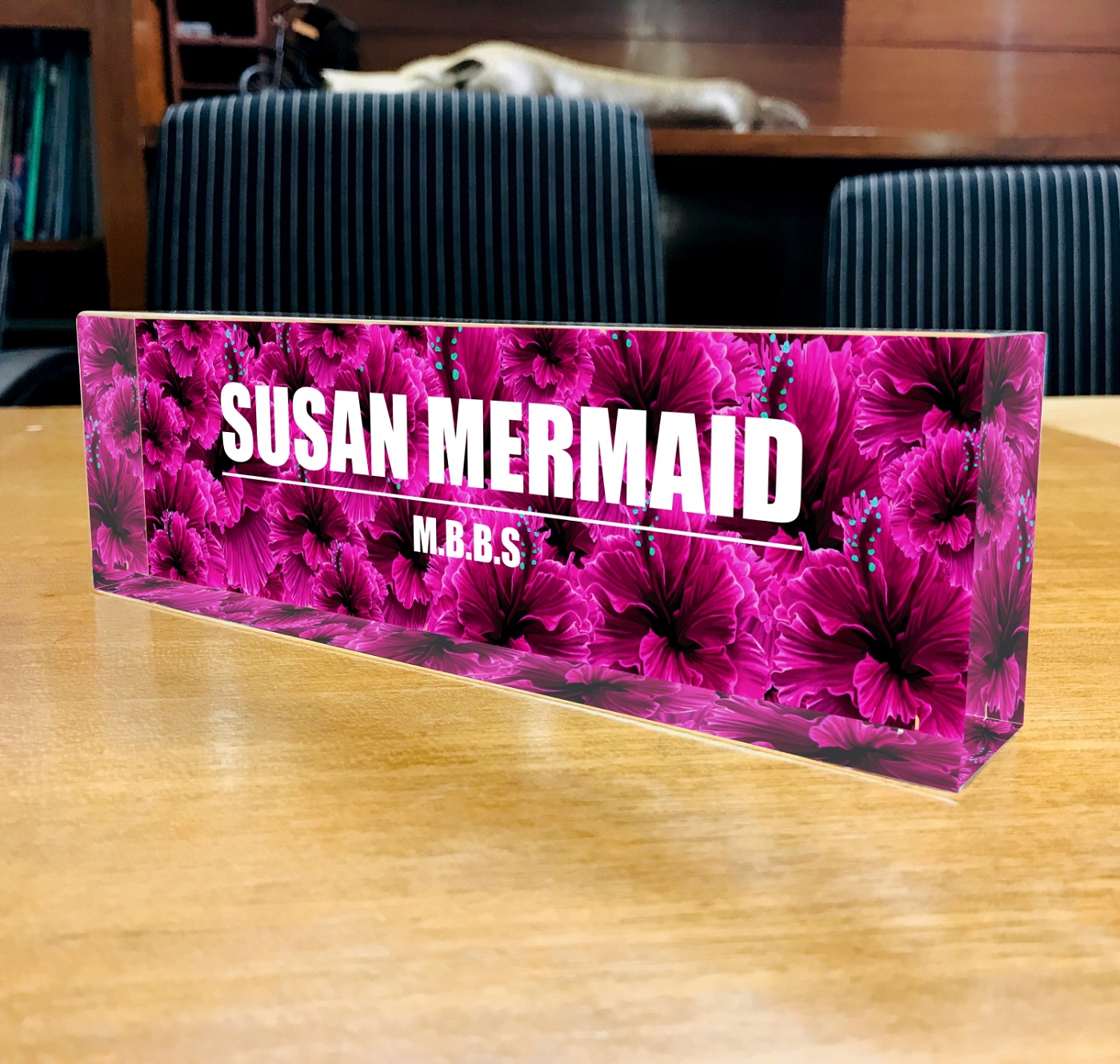Premium Customize Acrylic Desk Name Plate Beautiful Flower Design