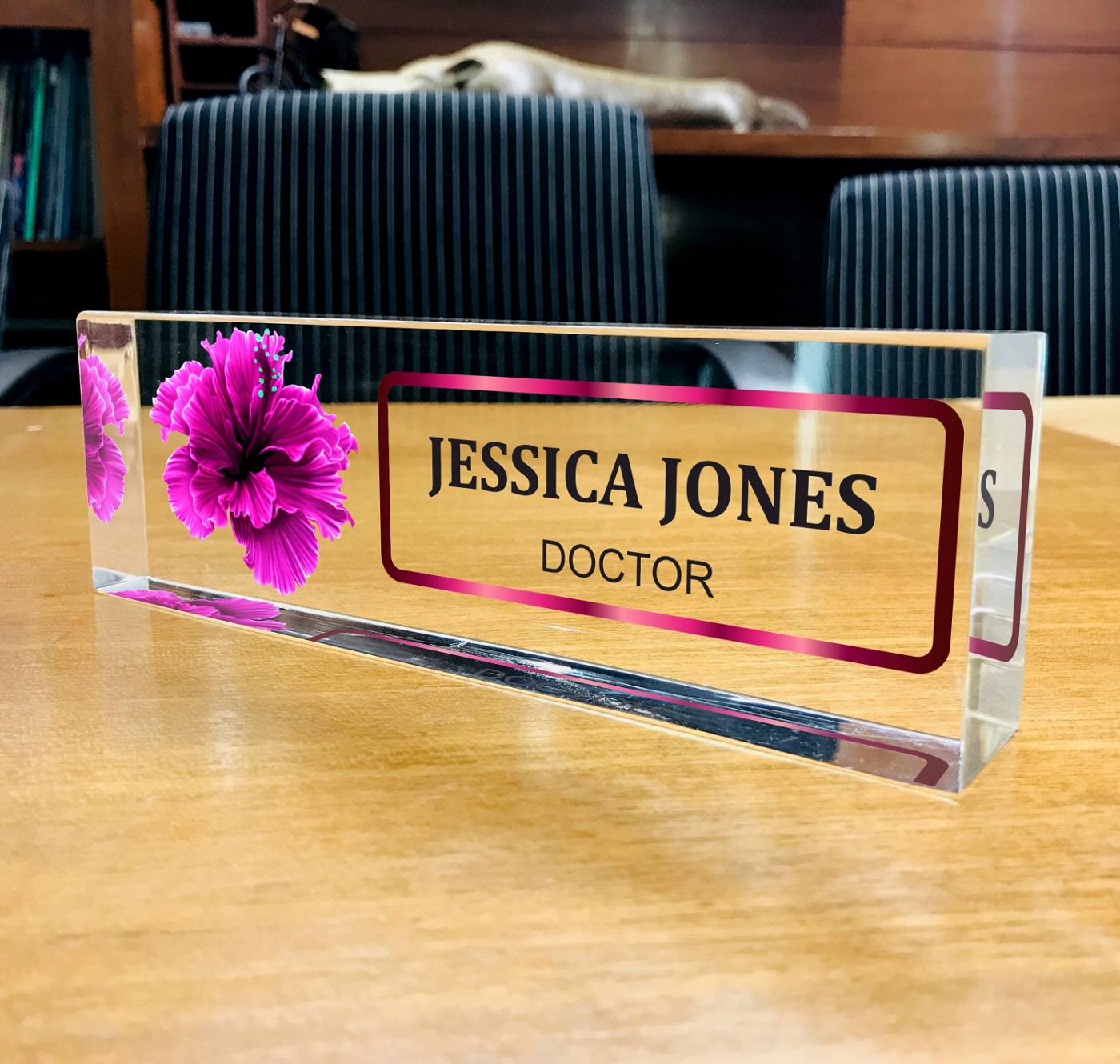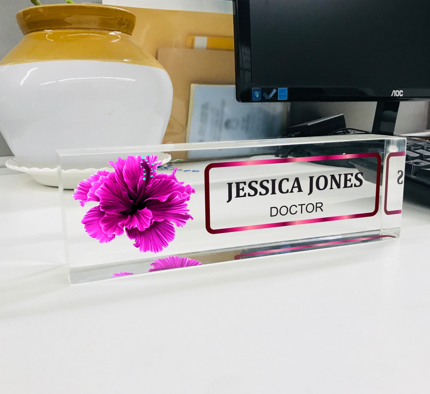 Premium Customize Acrylic Desk Name Plate Decent Flower Design