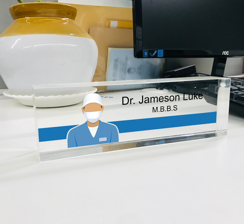 Premium Customize Acrylic Desk Name Plate Male Doctors