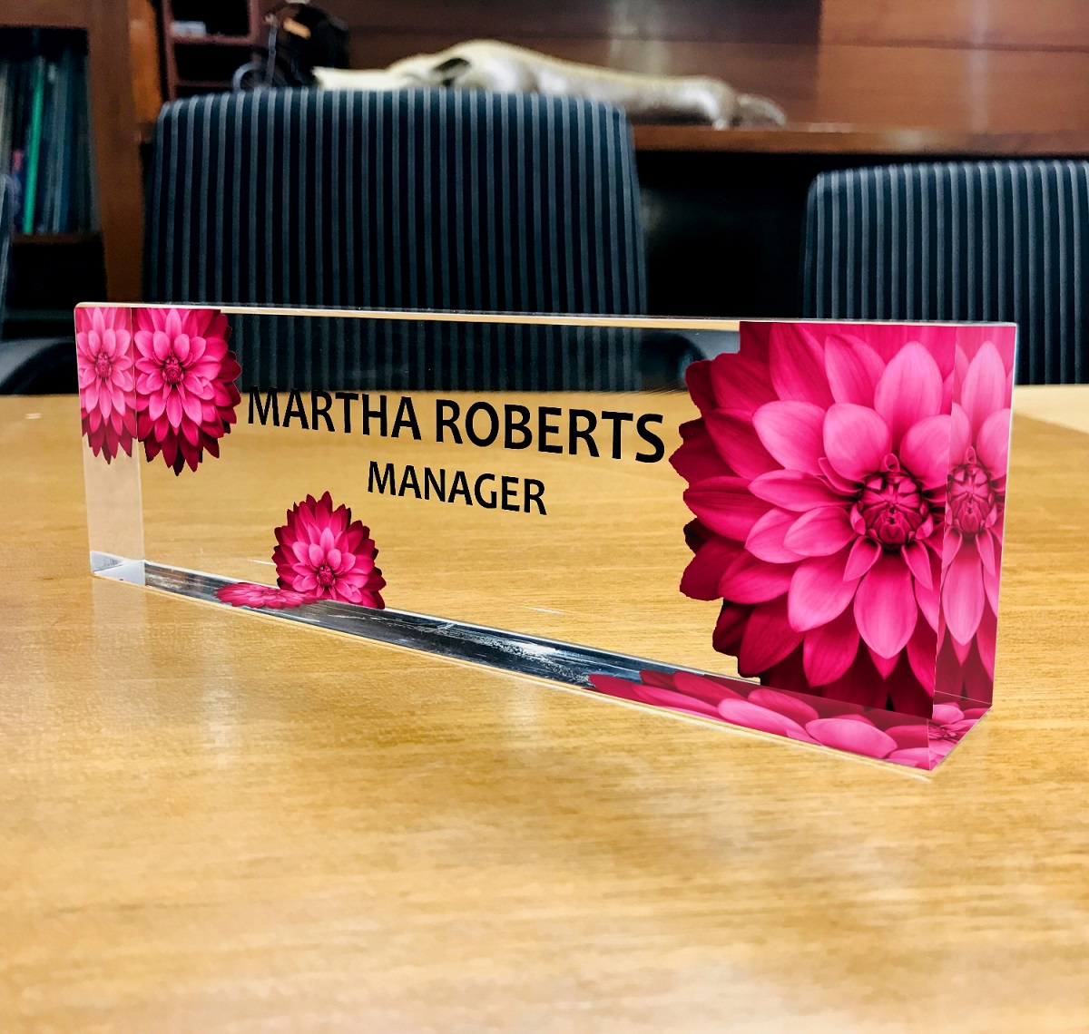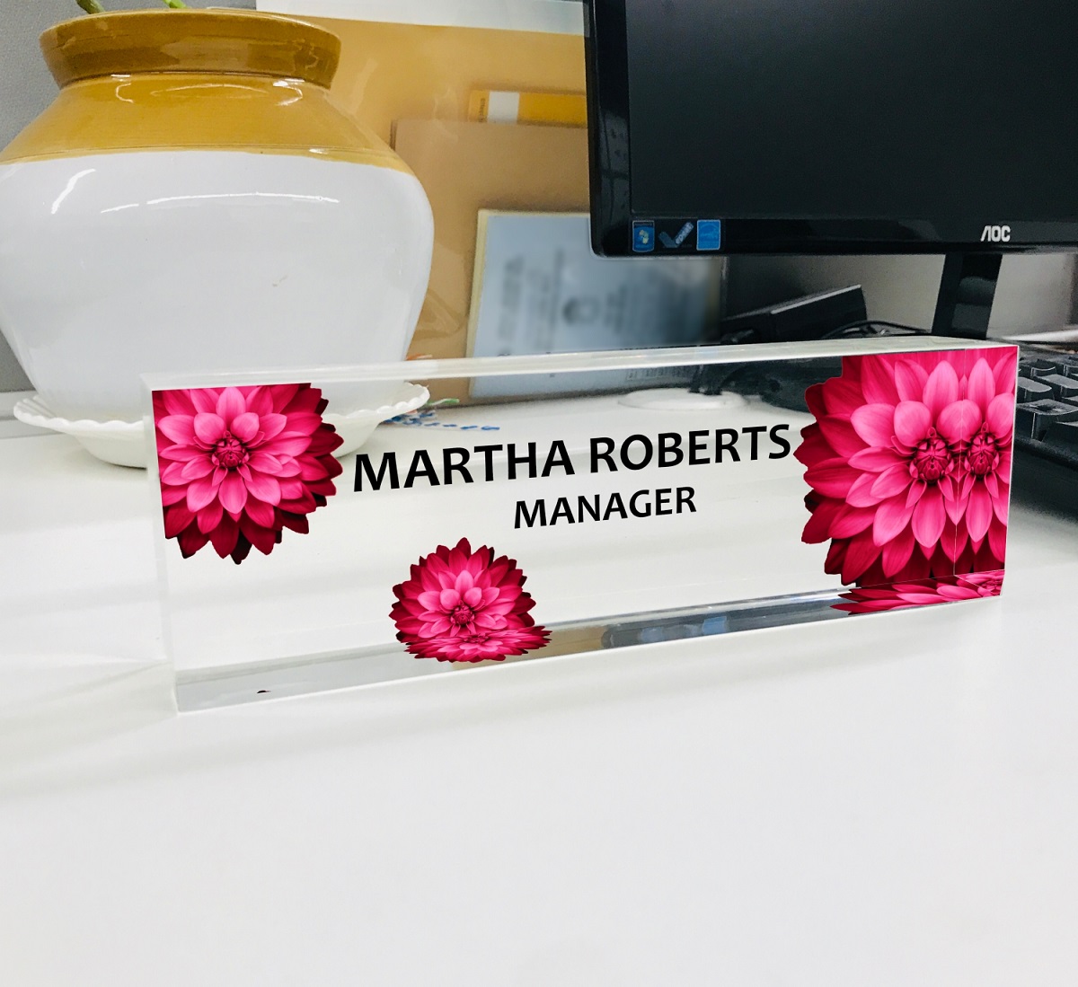Premium Customize Acrylic Desk Name Plate Pink Flower