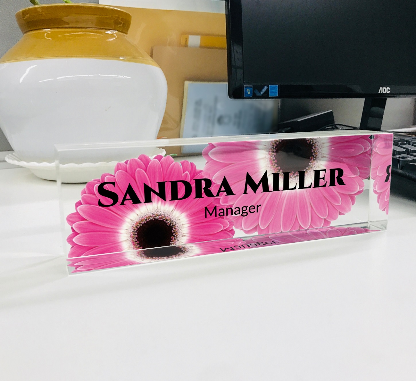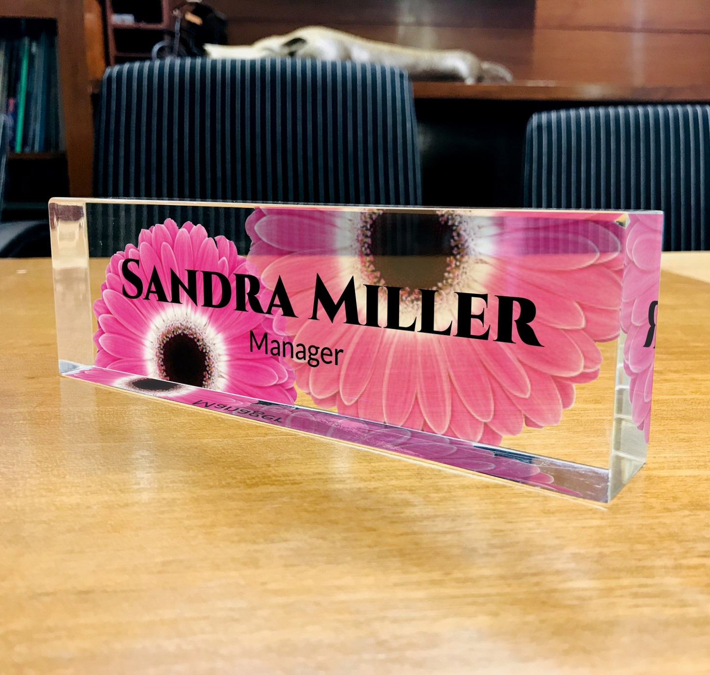 Premium Customize Acrylic Desk Name Plate Pink Flowers