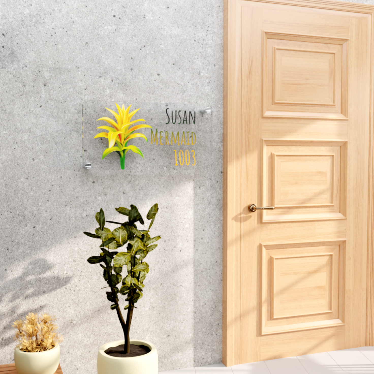 Premium Acrylic Door Name Plate Laser Cut Flower Design