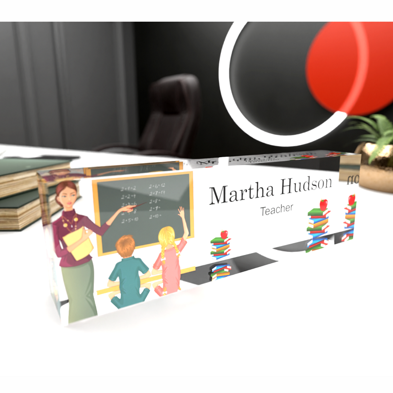 - Please make sure to spell the name & title correctly. We print on the back of the block using our High Definition UV-INK Printers. This technique gives the text and logo a premium 3D look!